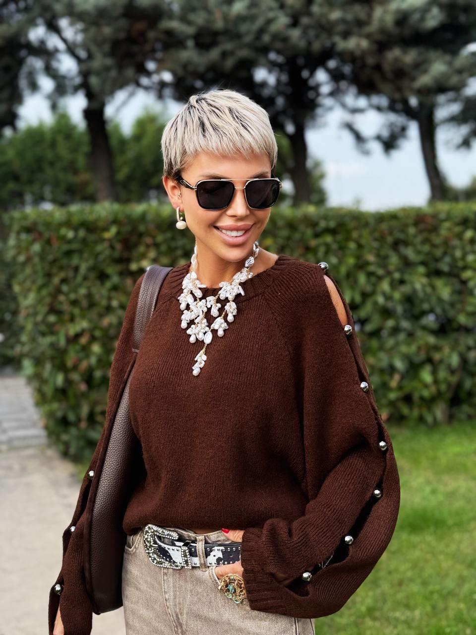 ACI KAHVE KOL TROK DETAYLI TRİKO KAZAK