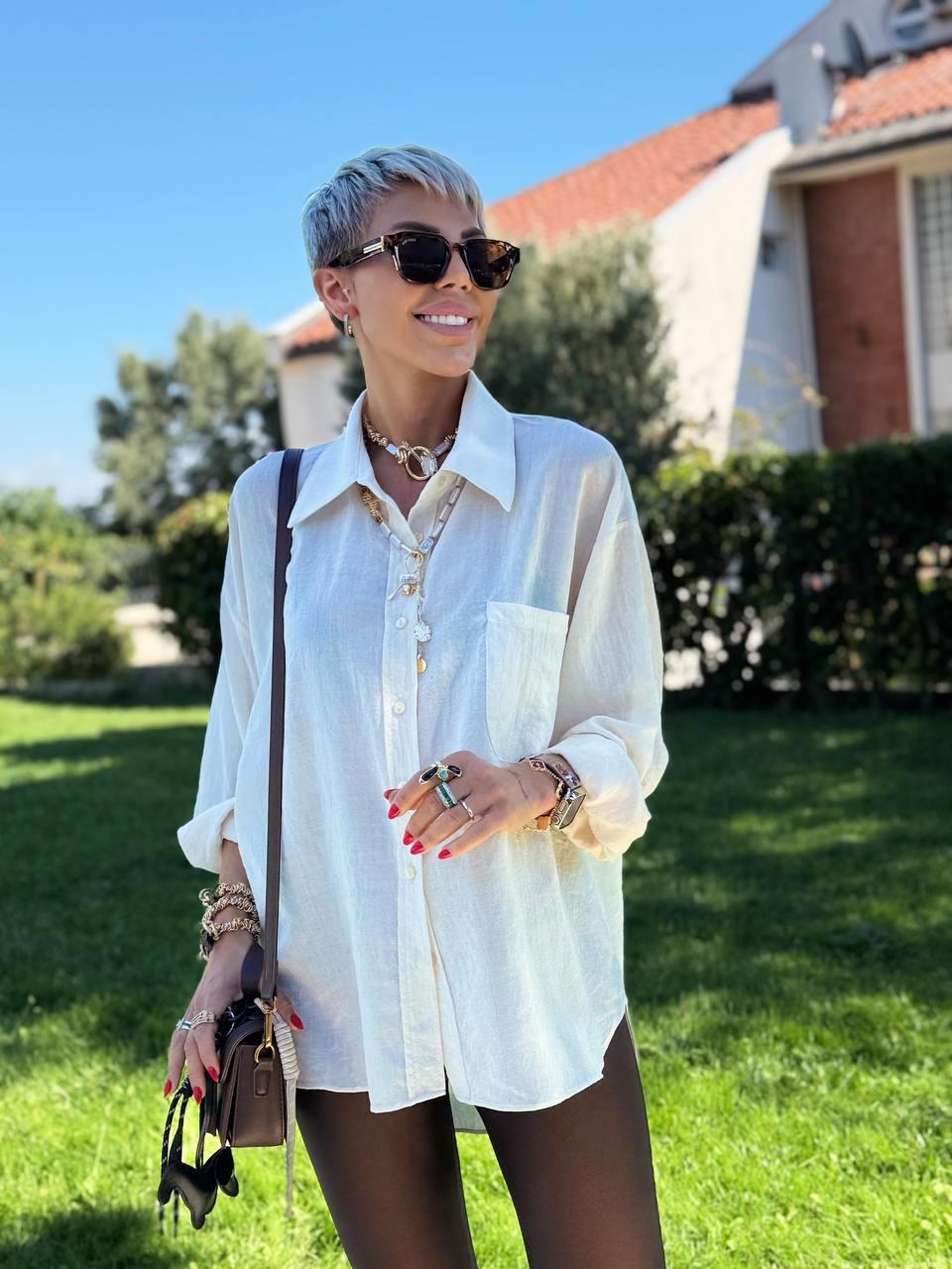 KREM RENK TRANSPARAN CEPLİ GÖMLEK