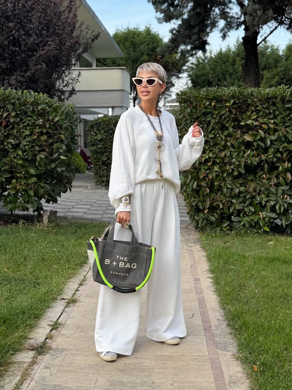 BEYAZ ÜÇ İPLİK PALAZZO EŞOFMAN