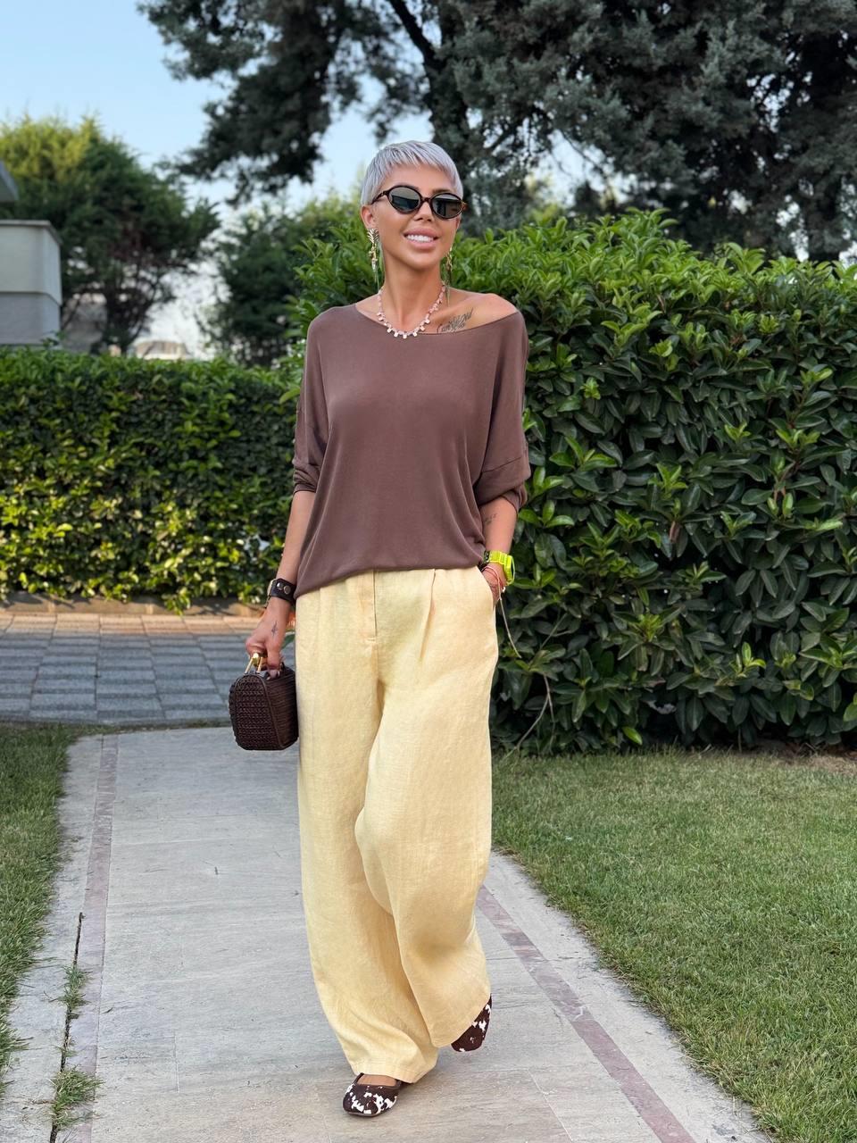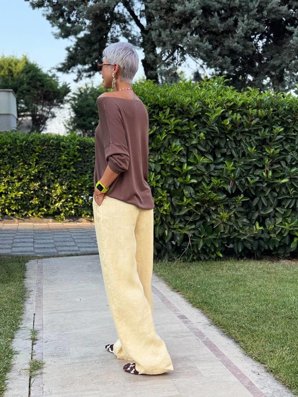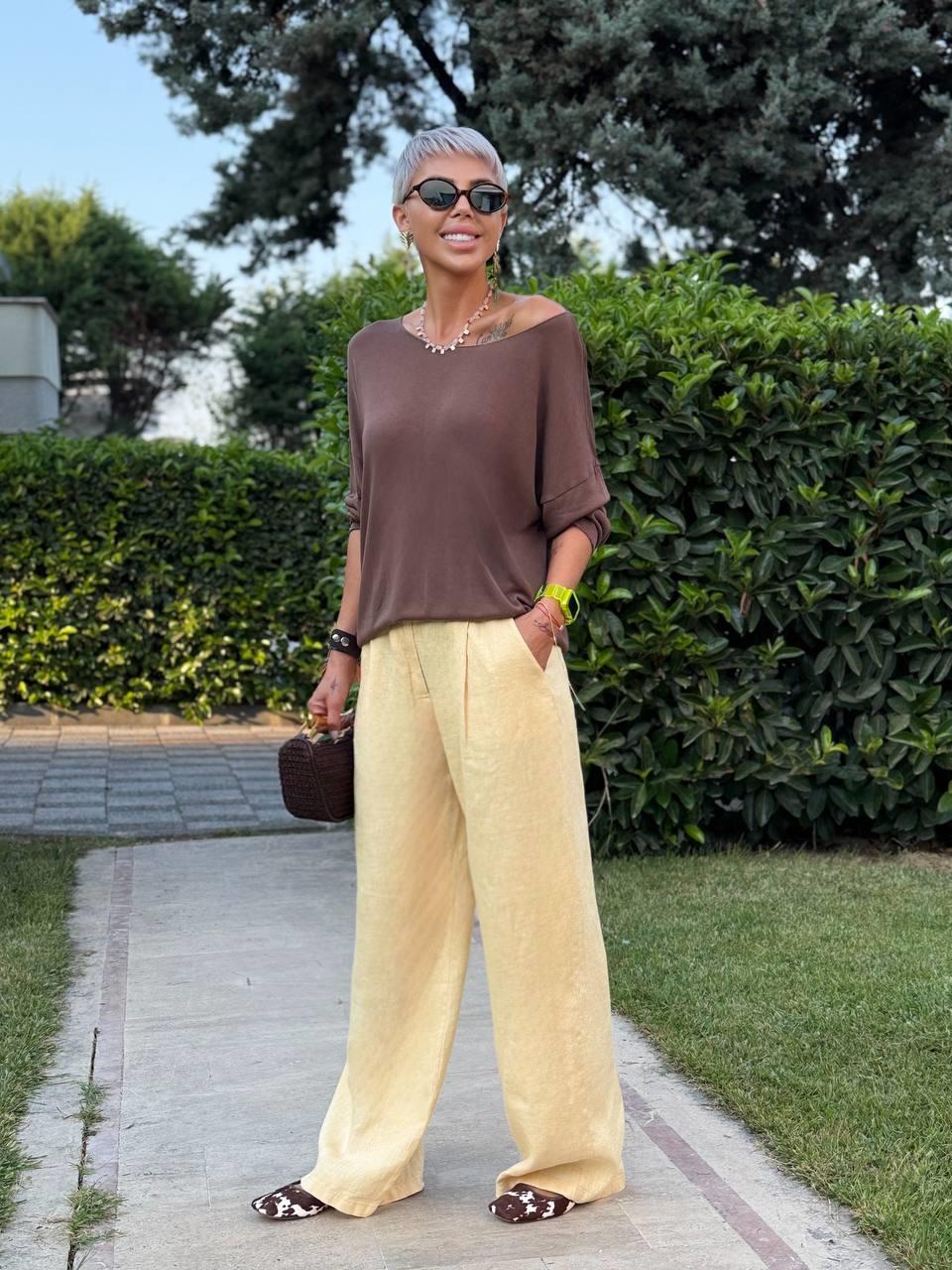 Model Ölçüleri: 1.68 cm / 50 kg Modelin Bedeni: S/36 Beden Kumaş İçeriği: Keten