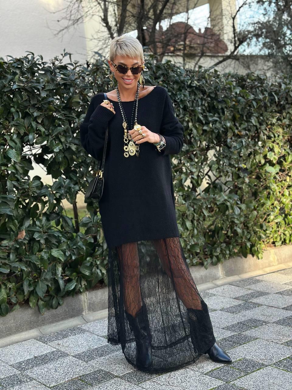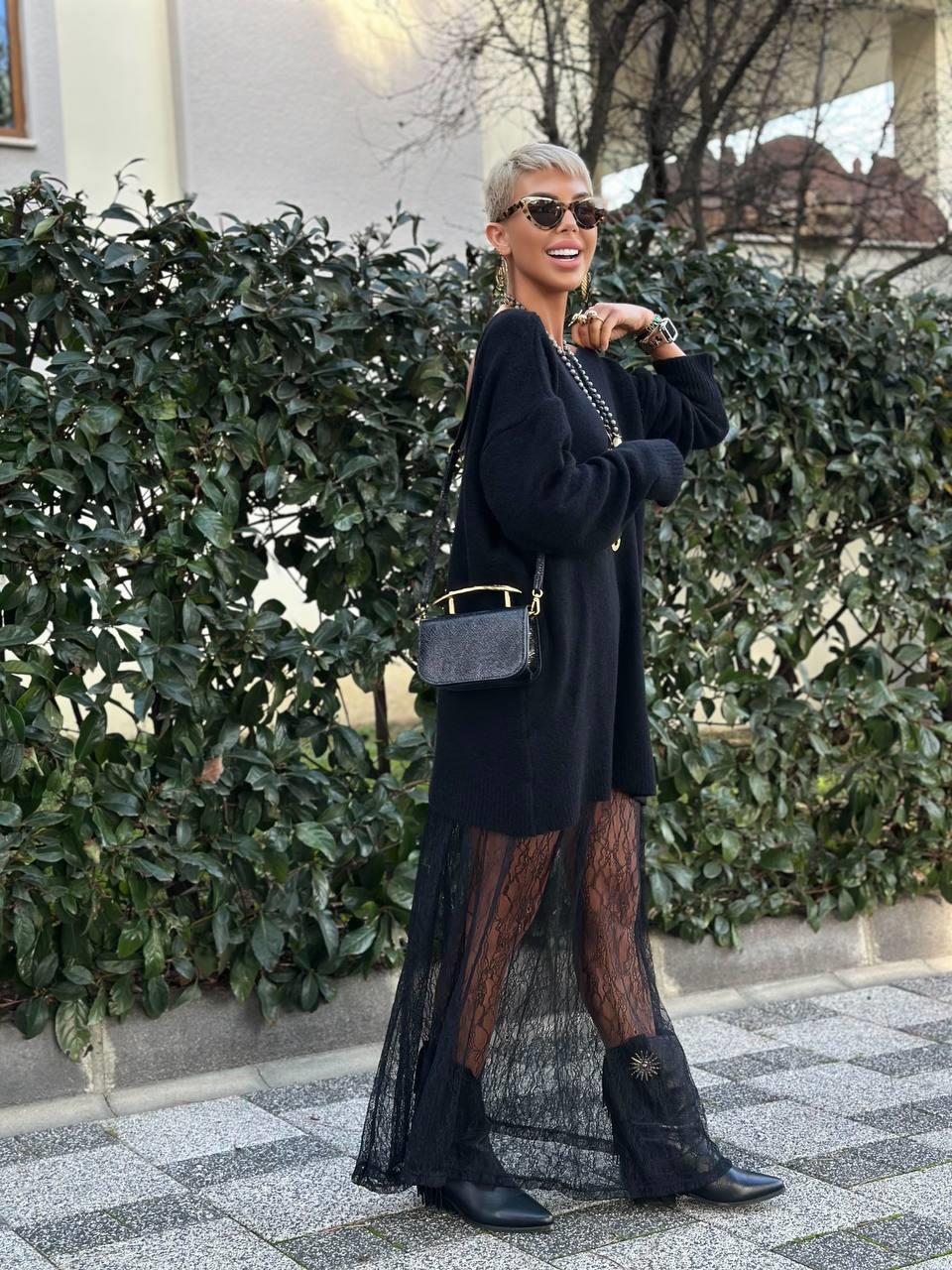 SİYAH S.STUDIO SOFT TOUCH MAXI DANTEL ETEK