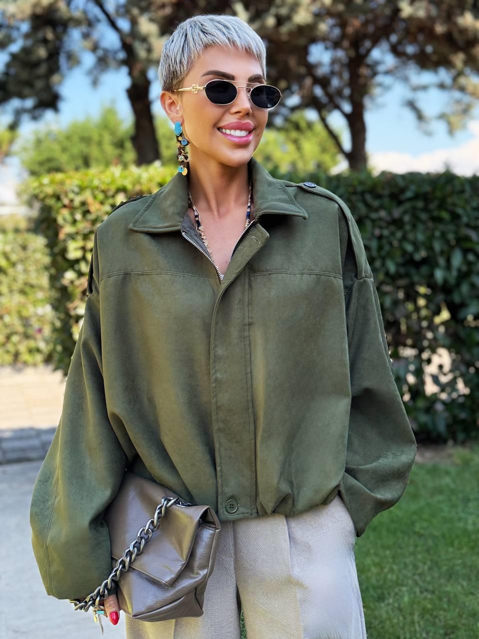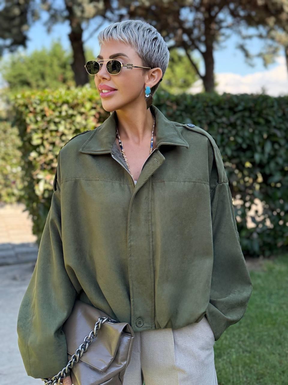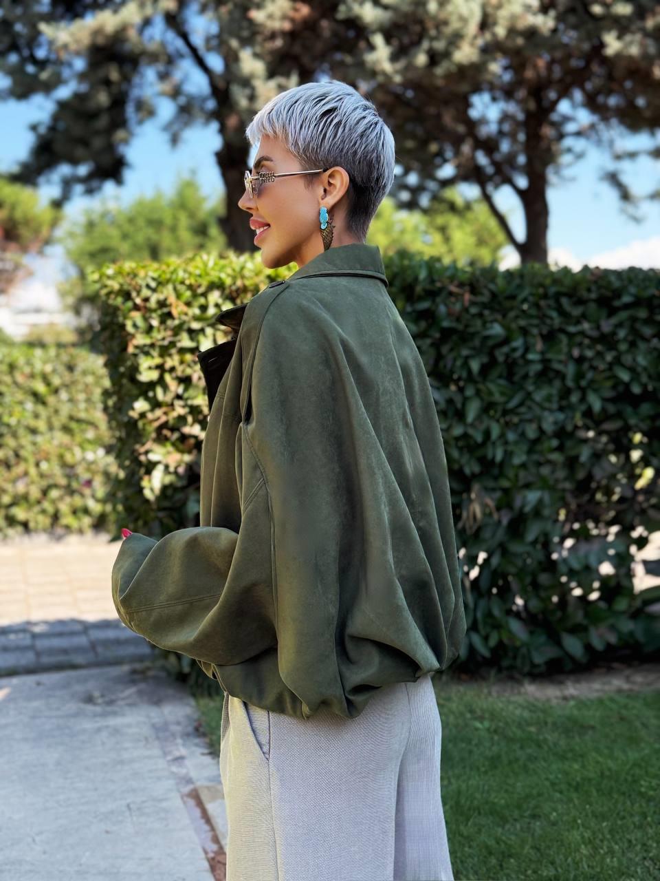 KHAKI SUEDE BATWING BALLOON JACKET