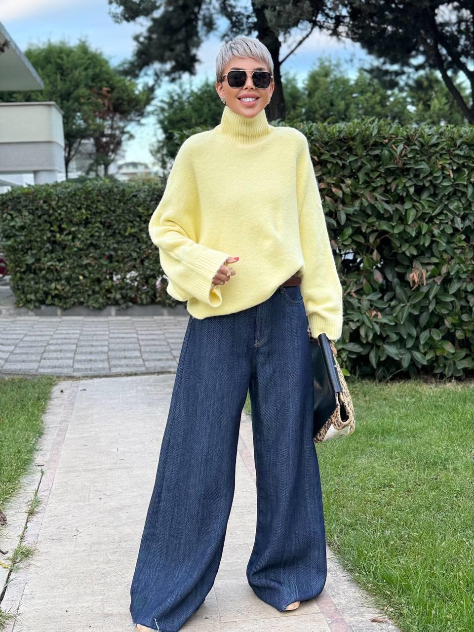 LACİVERT KENDİNDEN DESENLİ PREMIUM DENİM PANTOLON