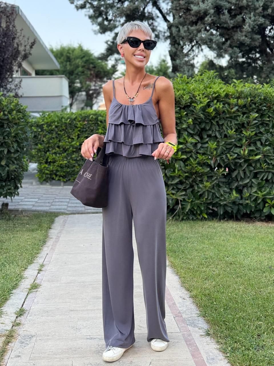ANTRASİT FIRFIRLI CROP PANTOLON TAKIM