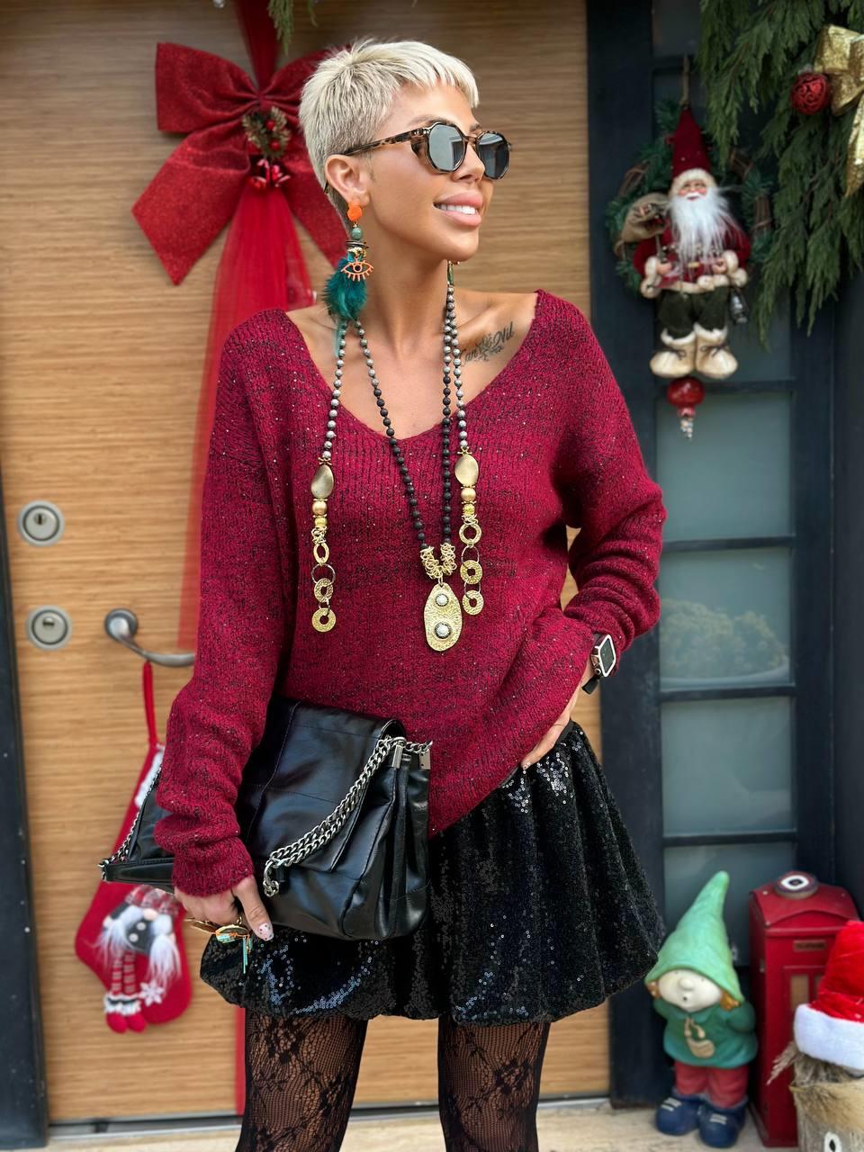 BORDO V YAKA PULLU TRİKO KAZAK SİYAH V YAKA PULLU TRİKO KAZAK