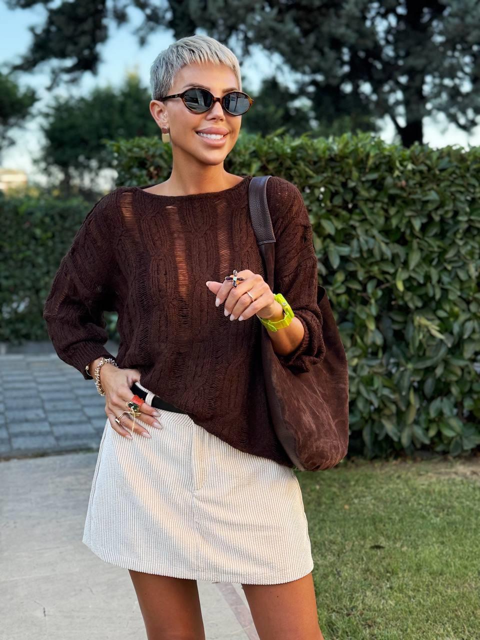 Modern ve zarif stilin rahat kesimle buluştuğu bu ekru saç örgü ajurlu triko kazak, hafif yapısı ve delikli dokusuyla katmanlı kombinler için ideal. Günlük stilinize hem konfor hem de sofistike bir görünüm kazandırır.